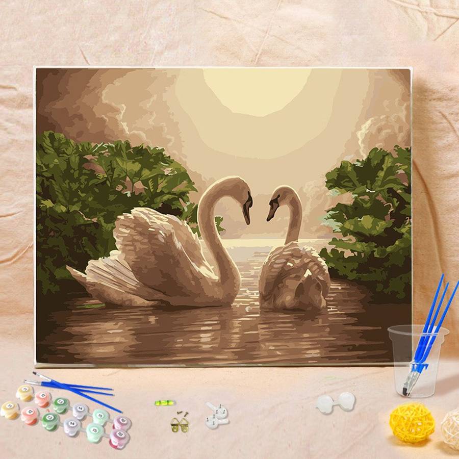 1 x 40X50CM Two Beauty Swans Painting DIY Self Handcrafted Paint Kit