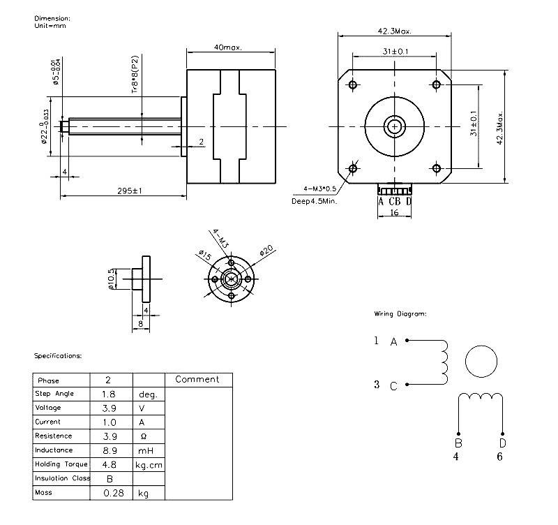 Holding torque (two interlinked rated current): ≥420mN.m (I = 1.5A)