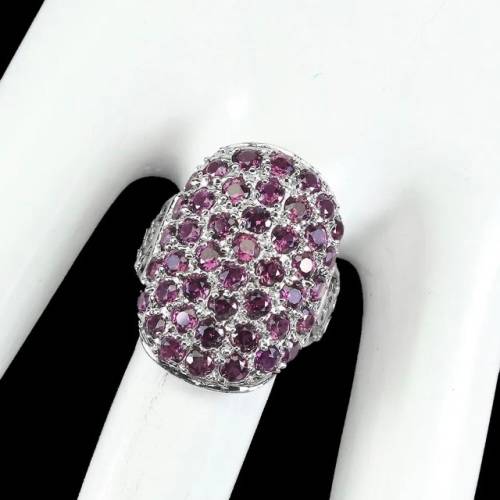 Fall in love with this one-of-a-kind ring! Boasting a dazzling, deep pink-purple hue,44 natural round rhodolite garnet gemstones and a solid
