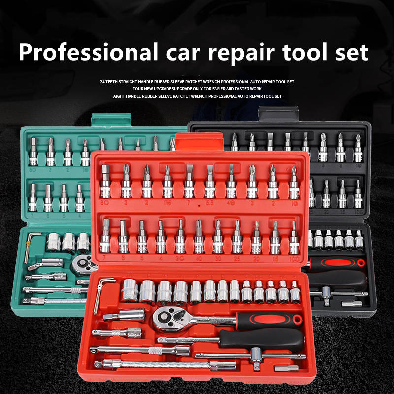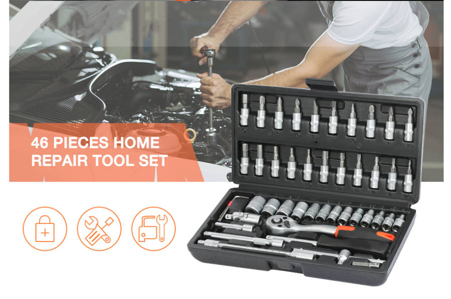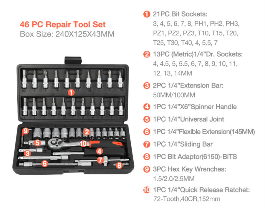 46 Pcs 1/4 Drive Socket Ratchet Wrench Set with Storage Case, Includes Metric Bit Socket Set and Ex