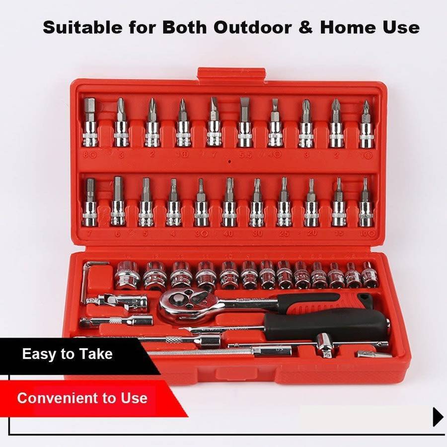 Tools Set 46pcs 1/4-Inch Socket Set DIY Home Car Vehicle Repair Set