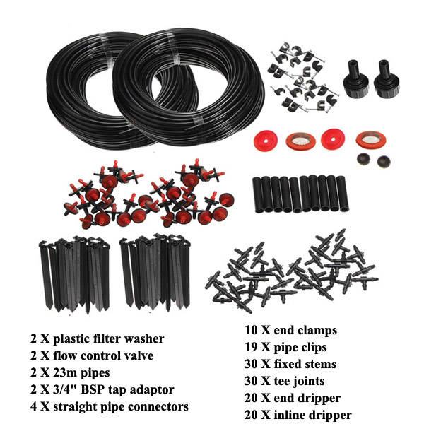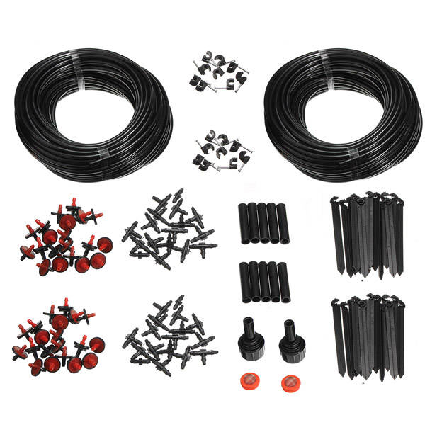46m Garden Plant Micro Drop Irrigation Atomization System Kit46m micro dripset, suitable for agriculture, lawn, garden, patio, greenhouse ,swimming pool misting fog cooling/irrigation, watering, greenhouse, humidification, balcony cooling, irrigation. Allows you to enjoy the cool of the summer terrace.