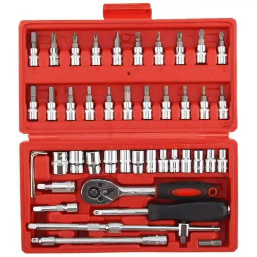 3. Rapid fall off ratchet wrench (positive and negative adjustable), The push button quick release feature ensures that the socket is locked securely while in use, but also allows for easy removal or quick change of socket even with greasy or oily finger. and our high quality 45 teeth ratchet can improve the operation speed. Is open throttle, in air conditioning, seat nut, tire fenders, car door locks, home (basic contains) usually used in the suit small screw nut the ideal of a set of tools