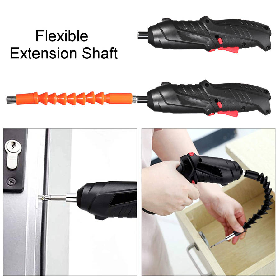 Features: - Mini size, protable and multifunction. - Screwdriver Bit anti-rust treatment, chrome steel. - Two grip mode gives different selections of operation. - Standard and reverse rotation in one-button conversion. - Strong magnetic connection chuck, easy to connect and disassemble. - With in LED working light, provides illumination in dark spaces as you work. - The flexible drill shaft is convenient for drilling angles and has a wide range of applications.