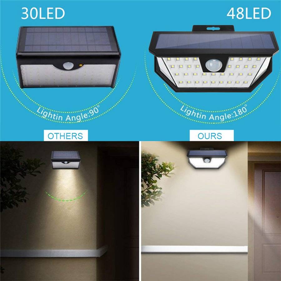 Feature: -Super bright 48LED Unique Wide Angle Design offers a larger coverage of luminosity. The corner LEDs put out enough extra light to really make the solar light very efficient as a whole