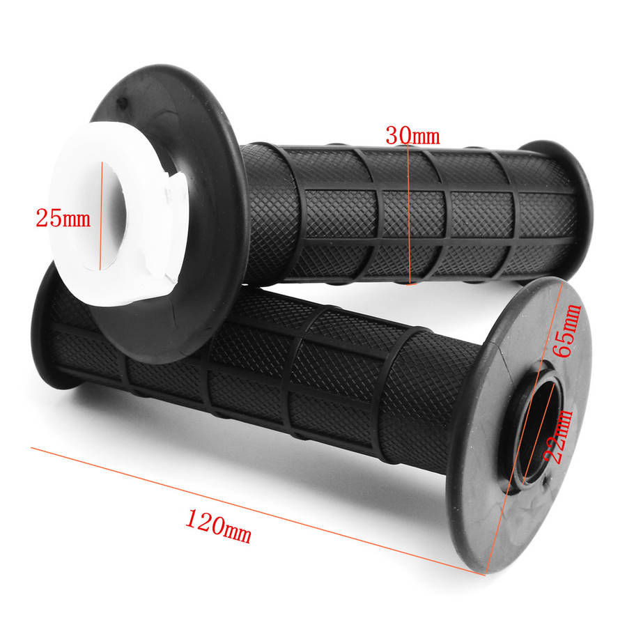 Specification: Product Name: Throttle Grips And Ignition Kill Assembly Color: Black Material: Plastic Ruuber Placement on Vehicle: Left, Right Throttle cable length: 90cm 35'' Left grip dimension: 22mm 7/8 Right grip dimension: 25mm 0.98