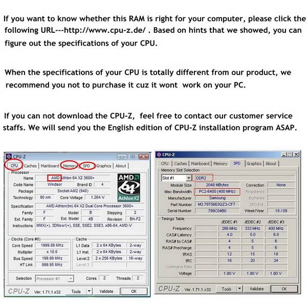 When a specification of the computer is not the same with our information of our RAM memory, please do not buy this article because it will not work properly with your computer.