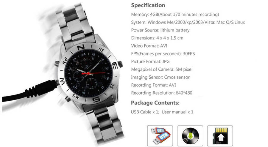 Fancy yourself a spy? Well now you can have everything but the “license to kill” with this camera disguised as a wristwatch. This discrete little number has 4GB of memory built in and is actually a working timepiece with a pinhole digital color video camera that can hook up to your other devices through USB 2.0. The camera is five megapixels and comes with the USB cable, power adapter and user manual.