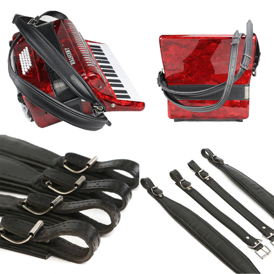 4pcs Black Thickness Guitar Accordion Strap PU Leather Shoulder Straps Belt Adjustable 2 Short 2 Lon