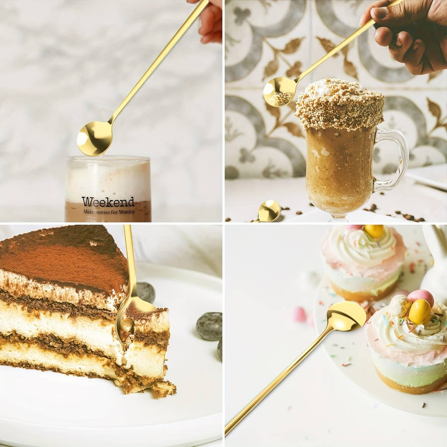 4pcs Golden Stainless Steel Spoons with Long Handles - Ideal for Coffee, Tea, Ice Cream, and De Random Color Random style Material:Stainless Steel Item ID:JE150202