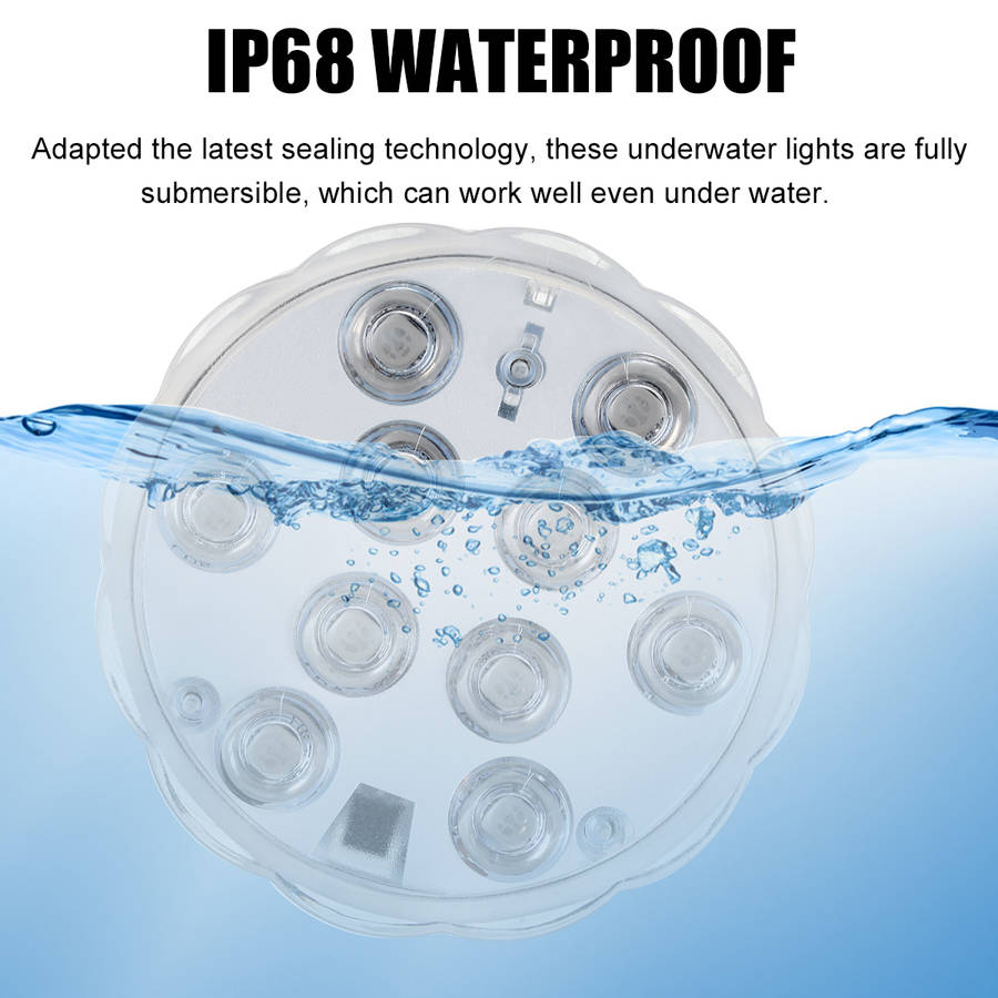 IP68 WATERPROOF: Adapted the latest sealing technology, these underwater lights are fully submersible, which can work well even under water