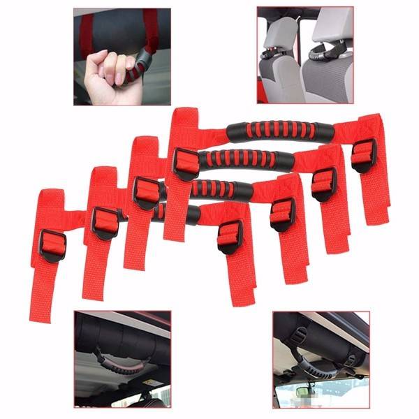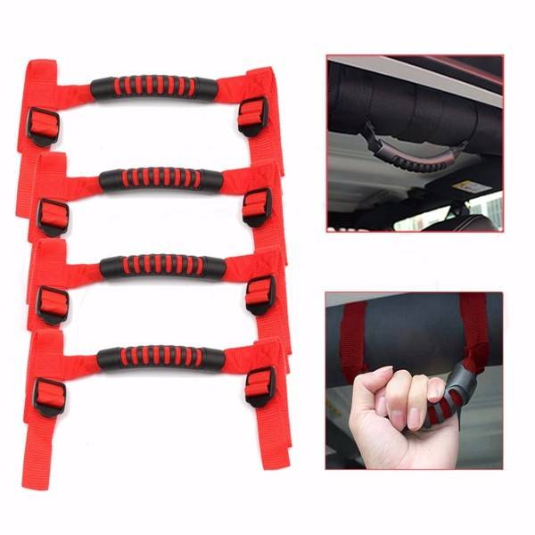 4pcs Red Roll Bar Car Grab Handle Kit Off Road Car Top Handle For Jeep Wrangler