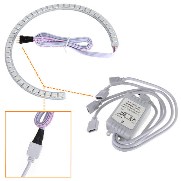 Package weight: 0.23 kg 4PCS Latest Multi-Color RGB LED Angel Eyes Halo Ring for BMW E36 E38 E39 E46 M3 Features: Brand new with box and tested. High efficiency, low power consumption and long service life. Environmental-friendly: energy saving, no UV and IR radiation, shock-proof and anti-corrosion.. Green and environmentally-friendly products, safe and reliable. Easy to install, no any modification required, just plug and play. BMW E46 Angel eyes are certainly the best in class upgrade, which you can use to lighten the BMW E46 3 series headlights. The best part is that they look similar to all new 2011 and up BMW OEM high power Angel eyes. These E46 LED Angel eyes are made with good quality materials so they last much longer than conventional CCFL angel eyes. You can buy these extremely beautiful upgrades for your BMW E46 3 series. The color can be changed. This LED BMW Angel Eyes Kit is 6 times brighter than conventional CCFL BMW Angel Eyes rings, with no blind point comparing with CCFL rings. Come with IR remote control for color change, flash pattern change and bright/dim change. As the Remote control panel show, total 16 colors available to change, contains: white,blue,yellow,red,purple,green colors etc. Remote control range: 25ft All necessary brackets and clips are included. Tap the red/black wires from the module box to turn signal lamp stage-1 or red wire to ACC/Ignition. Have the receiver of the module box placed behind the kidney nose for better reception. One year product warranty. NOTES: If connected, the rings lit green and the remote control does not work, it should be the input and output connections incorrect .Need to re-adjust the input and output lines of the cathode and anode. 4 pieces 131mm (5.15") LED Rings, one ring contain 42 pcs 5050 SMD,in total 168 pieces RGB 5050 SMD LED lights. Come with IR remote control for color change, flash pattern change and bright/dim change. As the Remote control panel show, total 16 colors available to change, contains: white,blue,yellow,red,purple,green colors etc. Remote control range: 25ft Fitment: 1992-1998 BMW E36 3 Series with Euro headlights 1995-2001 BMW E38 7 Series 1997-2003 BMW E39 5 Series 2000-2003 BMW E46 3 Series Coupe (before facelift) with HID headlights 1999-2004 BMW E46 3 Series Sedan or Wagon with factory equipped HID xenon headlights 2001-2006 BMW E46 M3 with HID headlights Package Included: 4 X BMW LED 42 RGB SMD Angel Eyes / Halo Ring Super White (Ourter Diameter : 131 MM) 1 X LED RGB SMD Controller 1 X RGB Remote Controller