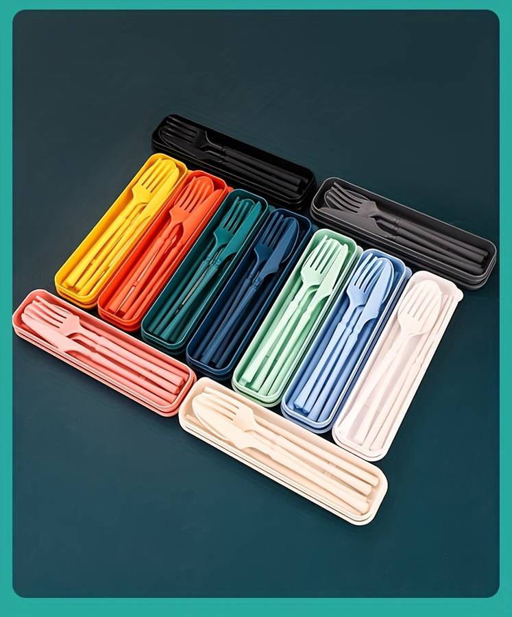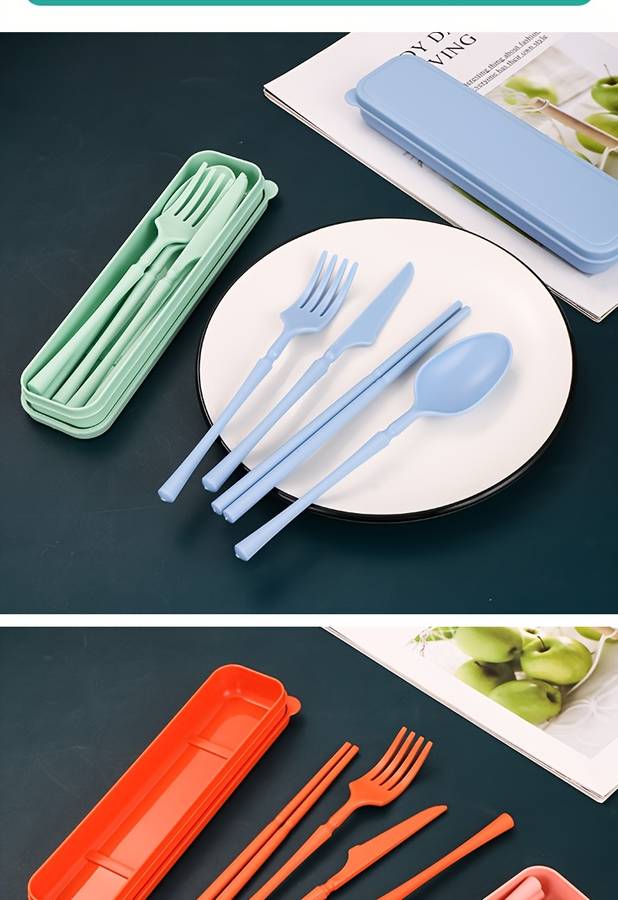 4pcs Set Knife Fork Spoon Chopsticks Home Office Outdoor Travel Portable Creative Tableware En Random Color Random style Material:wheat straw Item ID:WL1658659