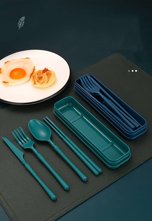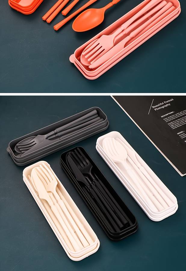 4pcs Set Knife Fork Spoon Chopsticks Home Office Outdoor Travel Portable Creative Tableware En