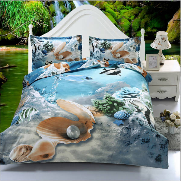 3D Cockleshell Undersea World Polyester Fiber Reactive Dyeing Bedding SetsSpecification:Fabric: polyester fiber
