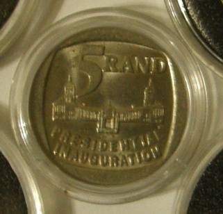 1 x 1994 inauguration R5 coin circulated but in excellent condition encapsulated
