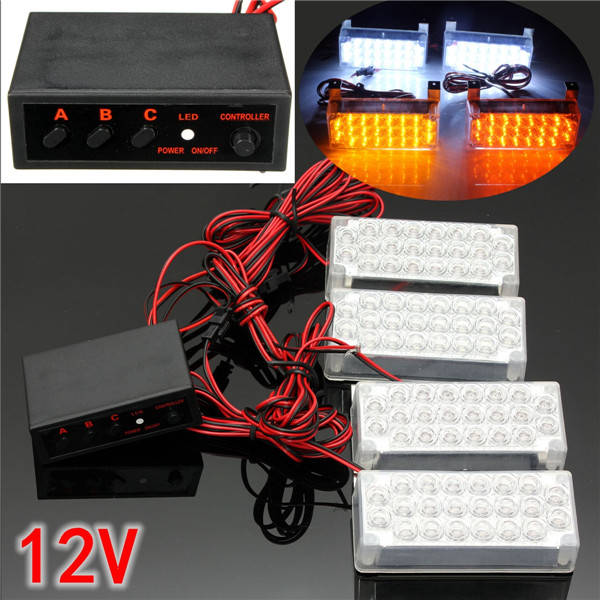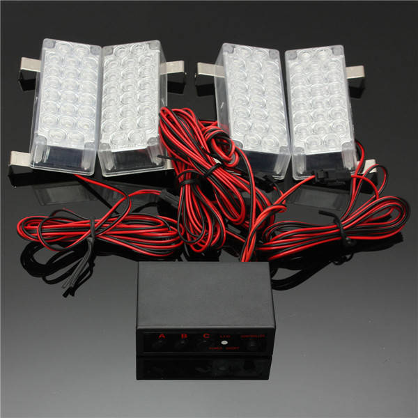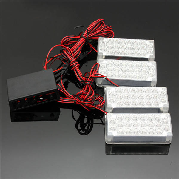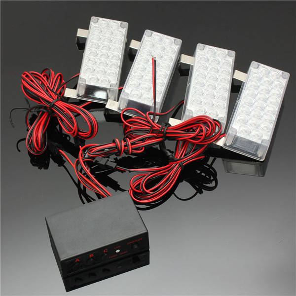 4x 22LED White Flashing Light Car Strobe Light with Controller 12V