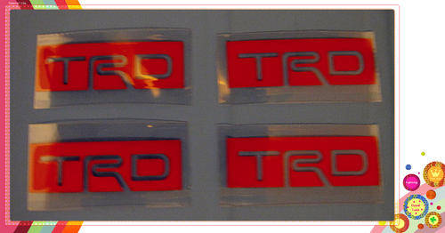 This listing is for 4x decal vinyl stickers with red background and transparent TRD wording