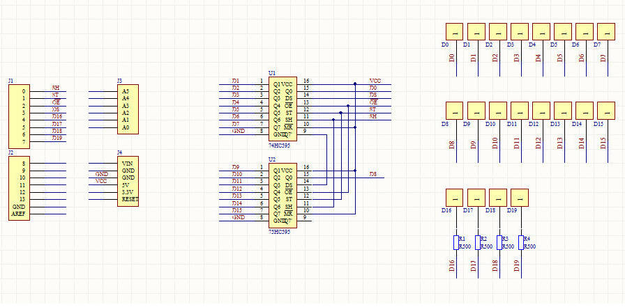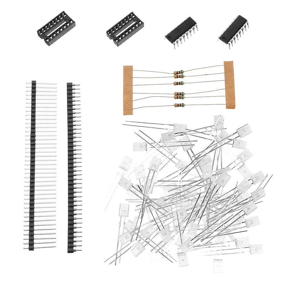 The display part of4x4x4 Light Cube kit consists of 64 cuboids LED, uses two 74HC595shift register chip to control LED anode, the 4 I/O ports controls 4 common cathodes of LED.