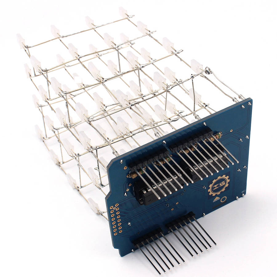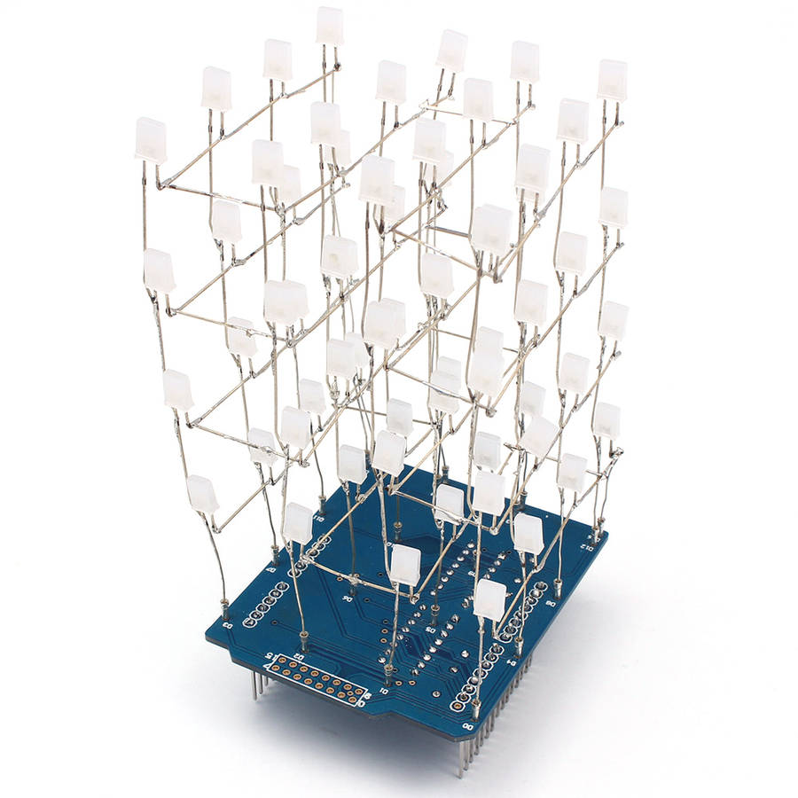4x4x4 Light Cube kit uses 64 cuboid LED. Expansion board uses two 74HC595 shift register chips, using eight I/Os can light the 4x4x4 Light Cube, itas hardware resources needed is less than other 4x4x4 light cubic expansion board(needs 20 I/Os to control).