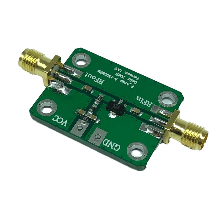 Description: The amplifier is a 5--1500MHz (20dB) amplifier with a large dynamic range and is suitable for fixed gain amplification of radio frequency signals. Parameter: Working frequency: 5-1500MHz Power gain: 20dB Maximum output power: +20dBm (100mW) @1dB compression point Working current: 85mA Power supply voltage: 5V DC System impedance: 50 ohms Product size: 32**24MM Product weight: 10 grams Package included: 1 xRF Amplifier