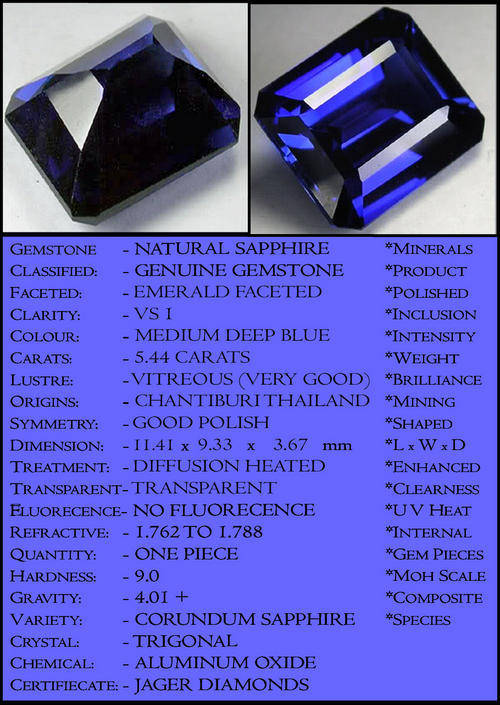 5.44 CT MEDIUM BLUE SAPPHIRE GEMSTONE POLISHED IN AN EMERALD SHAPE