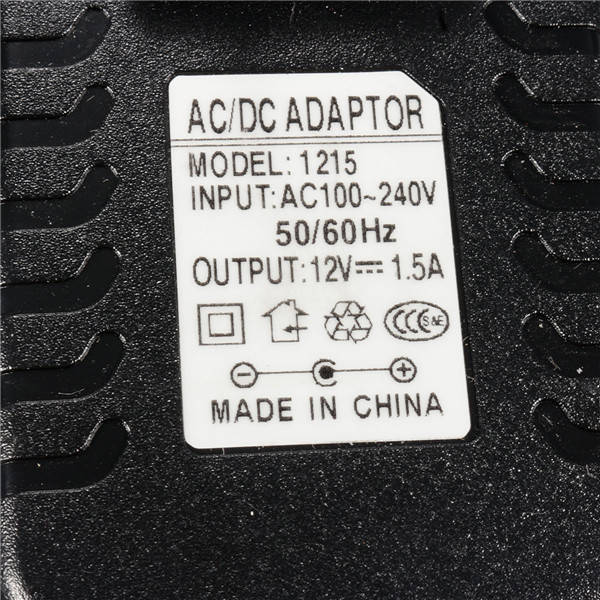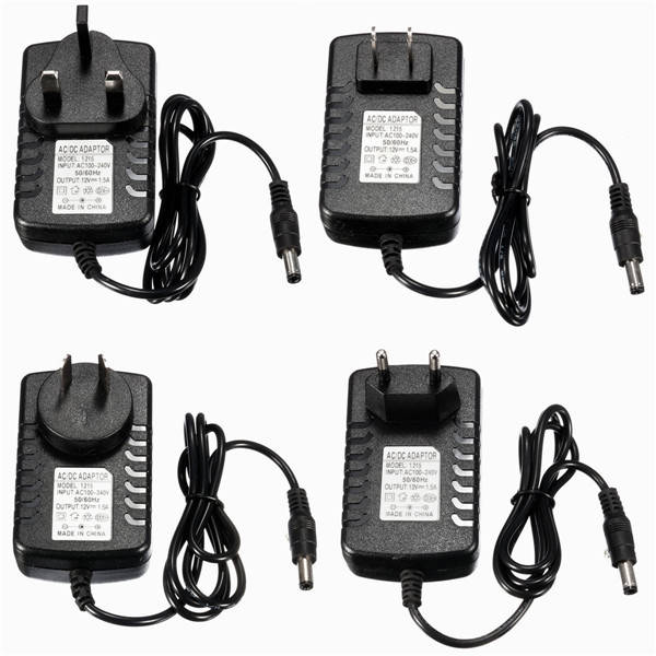 Color: Black Cable Length: About 85cm Adapter Size: About 7.5 x 4.8 x 7cm Input: AC 100-240V 50 / 60Hz Output: DC 12V 1.5A Power: 18W Connector Type: 5.5 x 2.5mm Plug Standard: UK Plug, EU Plug, AU Plug, US Plug Apply For: 12V 1.5A 5.5mm * 2.5mm Devices