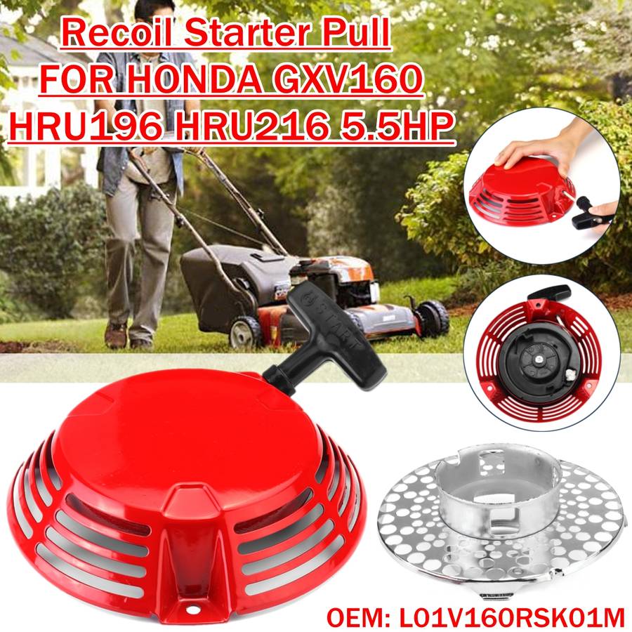 Description: -Plastic pull start recoil starter for HONDA -A perfect aftermarket replacement. -Easy to install.(instruction is not included) Specification: -Type: recoil starter assembly -Color: red -Material:plastic and Metal -OEM: L01V160RSK01M -Bolt holes:approx 140mm (centre to centre) -Diameter: 180mm Fitment: FOR HONDA GXV160 HRU196 HRU216 5.5HP Note: Please check your old recoil starter to confirm that ones you need as the picture show above before you purchase. Package Included: 1 X Recoil Starter Set