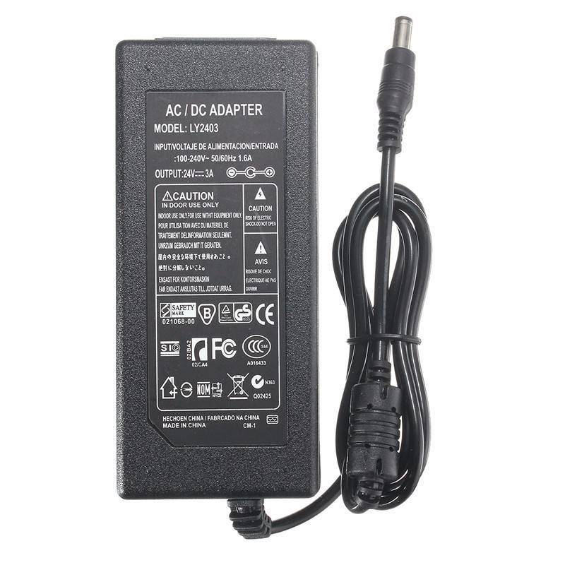 5.5mm x 2.5mm AC 100-240V to DC 24V 3A Switching Power Supply Adapter Transformer