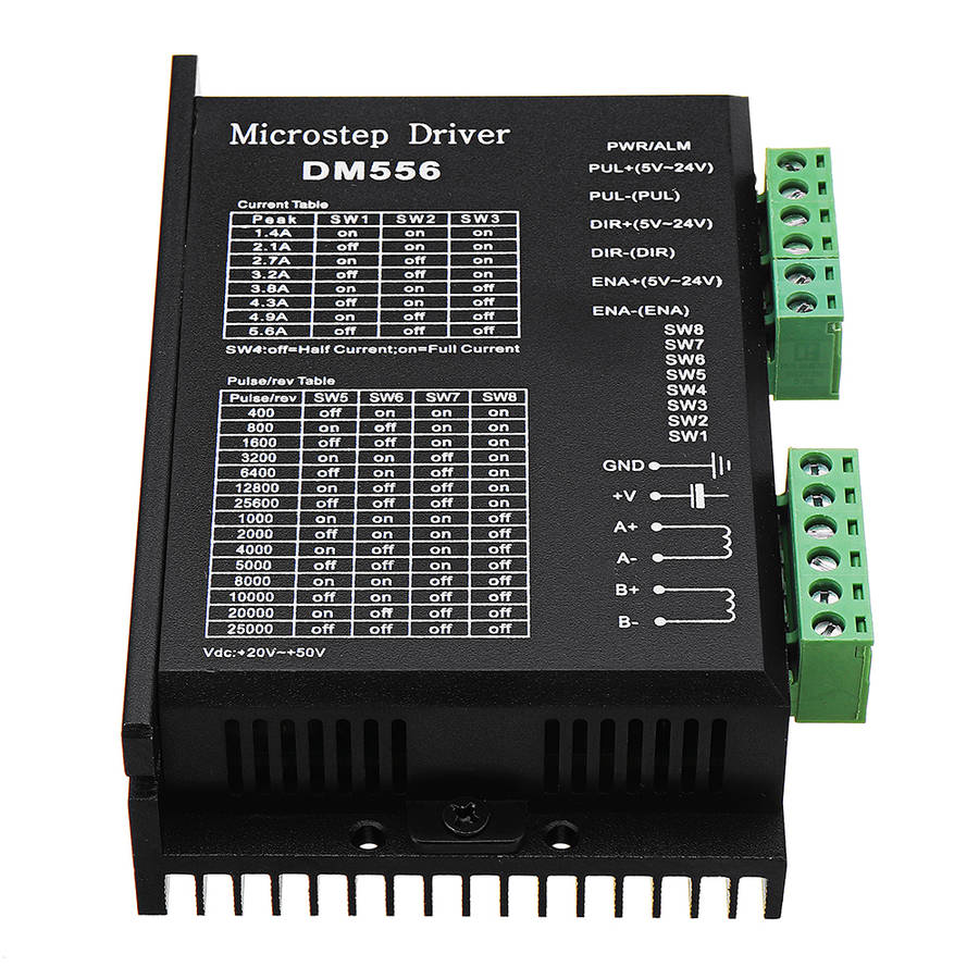Features: 1. Step & direction or CW/CCW control 2. DSP-based stepper control technology 3. Anti resonance 4. Automatic motor identification and self configuration 5. Extra low noise 6. Extra smooth movement 7. Low drive & motor heating 8. Maximum frequency: 200KHz 9. Input voltage: DC 24 - 50 V 10. Output current: 7 selections of 0.50 - 5.60A via DIP switches; or any value of 0.1-11. 5.60A via software configuration 12. Micro steps: 15 selections of half - 128 step via DIP switches; or full - 512 step via 13. Software configuration 14. Automatic idle current reduction 15.Compatible with 3D printers Package Includes: 1 x DM556 Stepper Motor DriverFor 3D Engraving Machine
