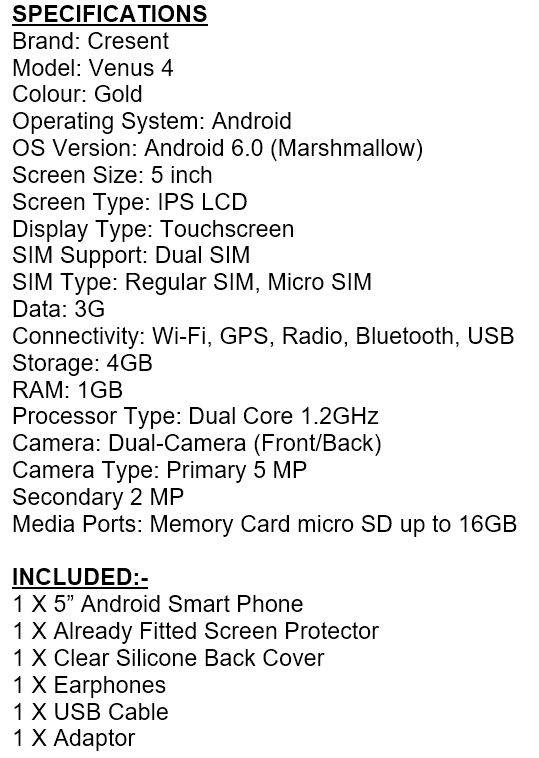 5" Android 6.0 Quadcore Smartphone - 4GB, Dual Sim, Dual Camera, IPS LCD Touch screen & EXTRA'S