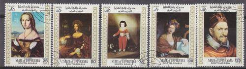 5 BEAUTIFUL THEMATIC STAMPS - ART - PAINTINGS - STATE OF UPPER YAFA(ARABIA).