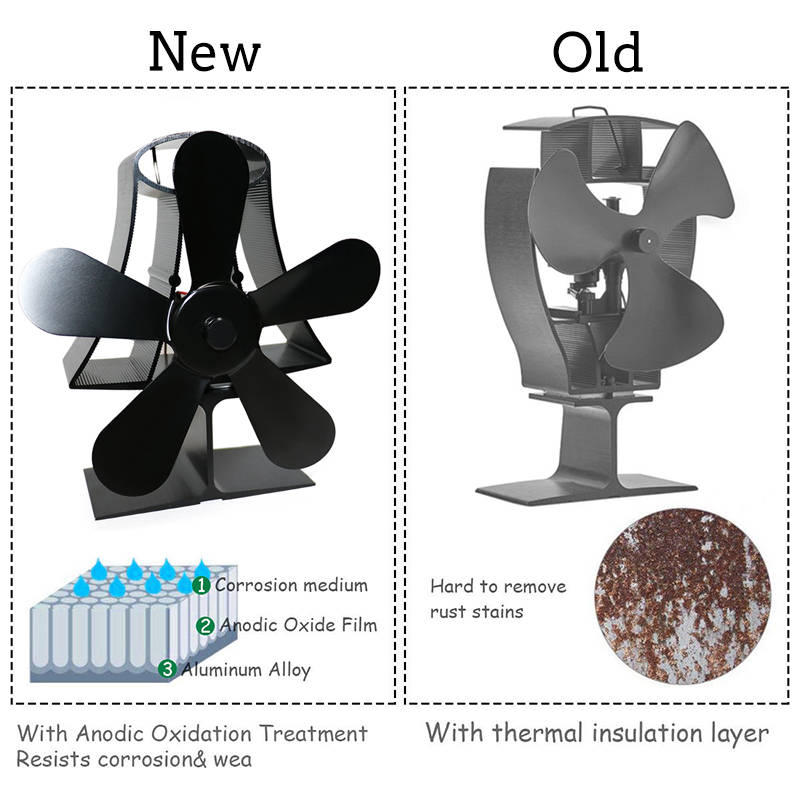 Features * This stove fan is silent and quiet. * Can circulate heat throughtout the room. * This stove fan is powered by transforming heat into energy, without using any battery or electricity. * The range of working temperature is about: 140?ᆪF / 60?ᆪC~662?ᆪF / 350?ᆪC, higher the temperature, faster it starts to spin. Attention: the temperature can not be over 662?ᆪF when using the stove fan. ? Specifications CFM: 180-210 Speed: 1100rpm Blade number: 5 Noise: a???25dB Start Temperature: 140?ᆪF / 60?ᆪC Working Temprature Range: 140?ᆪF / 60?ᆪC~662?ᆪF / 350?ᆪC Material: Anodizing Aluminum Height: 7.8inch Color: Rose Red / Bronze / Gold / Silver / Grey / White / Black Package included: 1x 5 Blades Heater Stove Fan