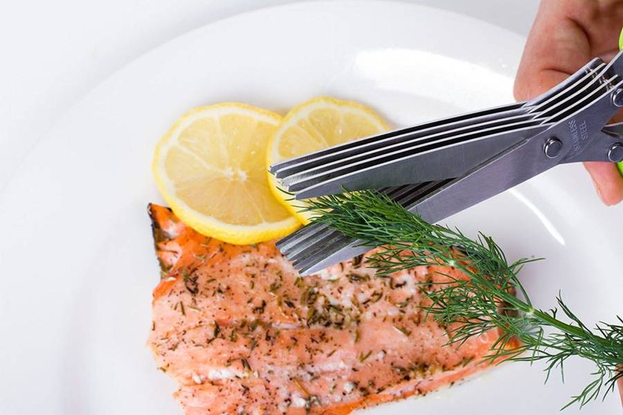 5-blade herb scissors are designed to make cutting fresh herbs easy at home. The five blades slice herbs like basil, parsley, and cilantro, quickly and evenly. The included blade cover has a slotted end that is used to easily clean between the blades making use, clean-up, and storage simple and easy.