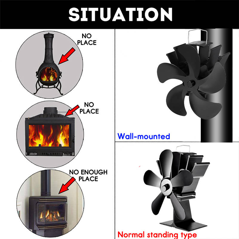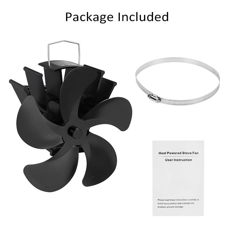Features: (1) Self-Powered: The Heat powered stove fan is designed to circulate the warm air created by a wood/coal or pellet burning stove operating with normal surface temperatures between 55a?? and 350a??. (2) Eco-Friendly: Thermoelectric module acts as a small generator to power the fan`s motor. No batteries or electricity required! Improved warm air circulation results in greater comfort and reduce wood consumption from your stove. (3) 1 Install Ways: Clamp on the pipe with metal ring, which does not occupy space and is beautiful and convenient.Easy to place, the blade rotates softly, no noise, and gives you a clean and refreshing enjoyment. (4) Safety Design: The furnace support is anodized aluminum, which is resistant to high temperature and does not deform or work without being deformed even under high temperature for a long time. (5) Longer Life: The fan base is equipped with a bimetallic safety device. If the surface temperature exceeds 300a??, the safety device will gently lift the front of the fan to protect the TEG and the motor. Specifications: Blade Qunatity: 5 Airflow: 180-220 CFM? Speed: 1500 R/MIN Start Temperature: 55?ᆪC Working Temperature Range: 131?ᆪF/55?ᆪC~662?ᆪF/350?ᆪC Material: Aluminum Color: Black/Grey/Gold/Silver/Bronze/Rose/Blue/Red Size???About 13cm*18cm Warning:? 1. Never handle the base of the stove fan, do not set the stove fan down on an unprotected surface when hot.? 2. To move or carry the fan, always use the gloves. Please keep fan away from small children when in use.? 3. The suitable temperature is 50-350a??. Temperatures above this range may damage the fan and generator set.? Package Included: 1 x Stove Fan 1 x Ring 1 x English Manual Details Pictures: