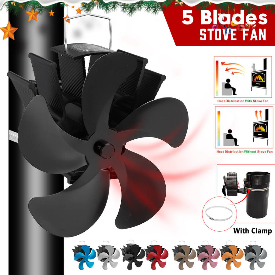 5 Blades Super Quiet Heat Powered Stove Fan Saving Wall Mounted Fireplace (COLOR: RED)
