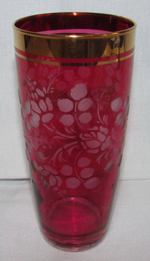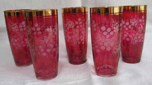 5 BEAUTIFUL BOHEMIAN CRANBERRY COLOURED TALL GLASSES