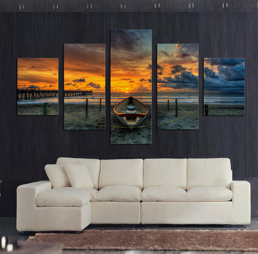 5 Cascade The Sea Sunset Canvas Wall Painting Picture Home Decoration Without Frame Including Installation Tools