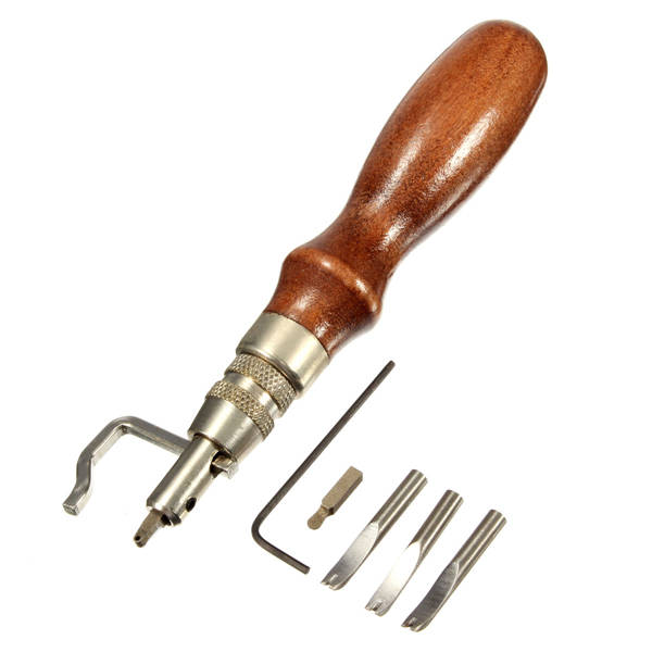Description: 5 in 1 Adjustable Leather Edge Stitching Groover Leathercraft Crease Blank Holder DIY Tools Specifications: Item: Leather craft tool Material: Wood + Metal Total length: about 13.5cm Color: as pictured Features: 1. It is a useful and handy tool for handing stitching grooves 2. It will be a great tool when you do leather craft. 3. Adjustable groover width from 1.5mm to 20mm 4. 3 Replace Edge Beveler Tips width:0.8mm, 1.0mm, 1.2mm Package included: 1x 5in1 Leather craft tool More Details: