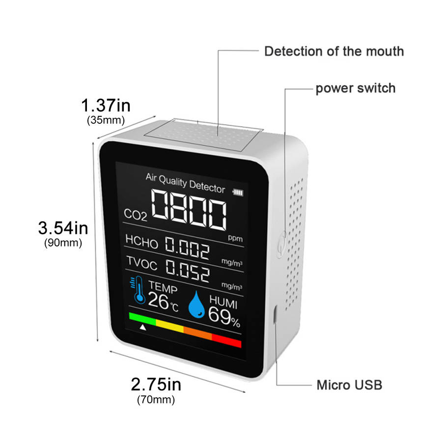 -- Real-time monitoring and real-time display of carbon dioxide concentration per cubic meter.
