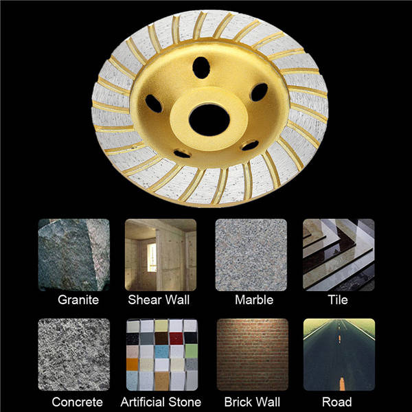 Features: Great choice for people who do granite and marble worktops, headstones, tilers, builders Applicable to the grinding of marble, granite, ceramic, artificial stone and glass, and more, especially suitable for the building decorated with concrete wall, marble floor, grinding edge of granite plate, chamfering and arc grinding With air holes designed to aid in and maintain a cool stable cutting pattern and reduced wear Package Included: 1 x Diamond Grinding Wheel Disc
