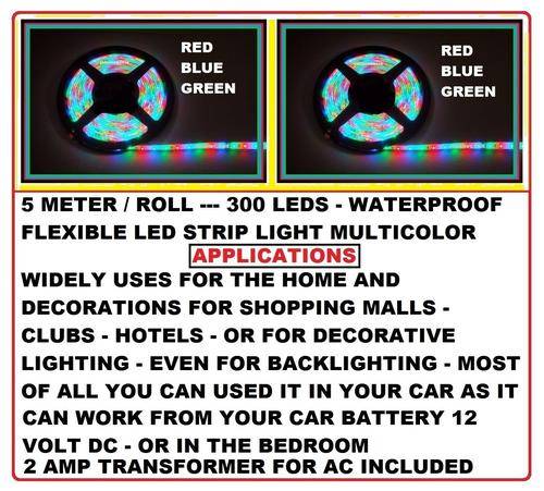 5 METER LED ROLL---MULTICOLOR---WATER PROOF 300 LED STRIP + POWER SUPPLY