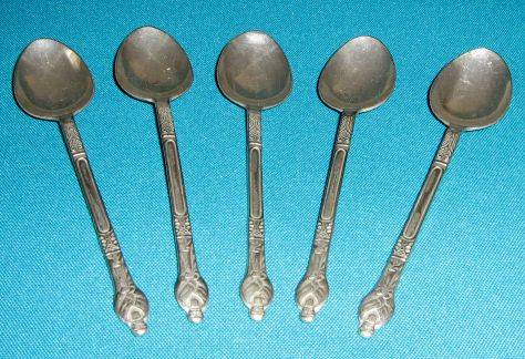 5 OLD SILVER PLATED APOSTLE SPOONS.