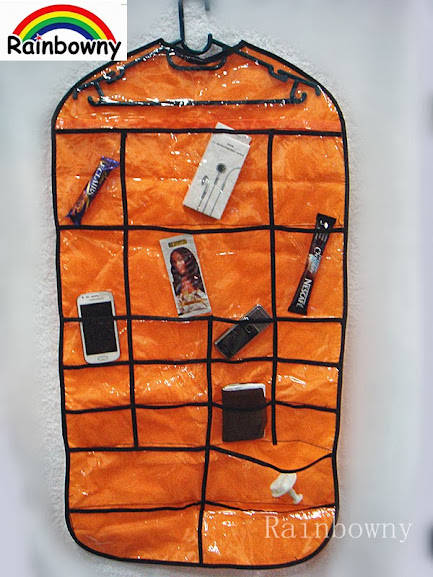 zippered pocket organizer-use to neatly store earrings,necklacs and bracelets;use larger pockets for scarves and other acc essories;easily view through the clear pockets;hangs neatly form a huggable hanger
