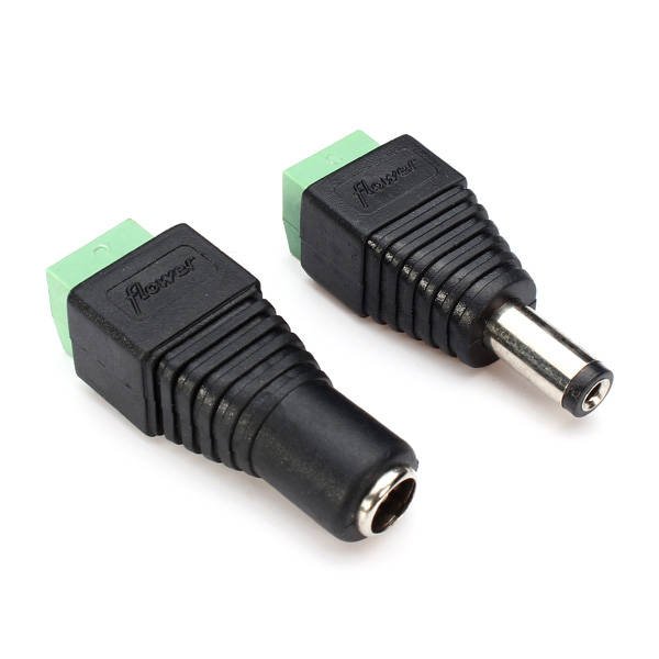 Description: Simply & Professional appearance for power cabling Easier for camera installation, save time and more securer cable connection 5.5mm x 2.1mm Female power plug connector This Jack Adapter Connector can hold 14 largest silicone line. Clearlypositive and negativemark is avoidreverse. Features: 1.Product line core is coarse, can withstand the 12V- 36V voltage, cortical plastic materials, such as line body is soft, with high fidelity design, transmission of power; 2.Color: green, black. 3.Green glue stick marked + - is negative. 4.The scope of application: security, monitoring equipment, monitoring camera gun,router, switch, broadband cats and so on equipment 2.1 DC output power input connection Package Includes: 5 Pairs Male Female 12V DC Power Plug Jack Adapter Connector