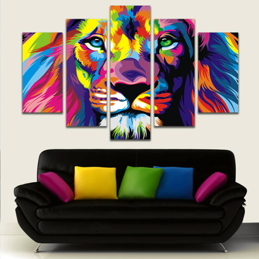 5 Pcs Wall Decorative Painting Huge Modern Abstract Wall Decor Colorful Lion 5 Pcs Wall Decorative Painting Huge Modern Abstract Wall Decor Colorful Lion