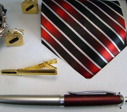 5 PIECE RED GIFT SET CONSISTING OF WATCH, CUFFLINKS, TIE PIN, TIE AND MATCHING PEN + FREE XMAS GIFT