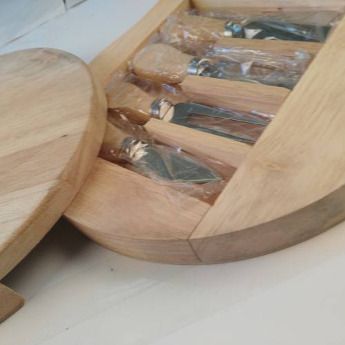 A great looking large cheese board with a sliding drawer that store the 4 stainless steel cheese tools, selection of knifes to suit softest or hardest cheese. Suitable for dining table and ideal gift for family and friends.