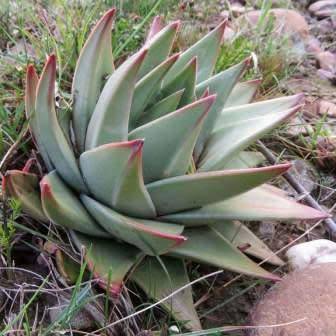Tulista is a genus of dwarf, succulent plants, that was previously included in Haworthia subgenus Robustipedunculares. Based on evidence from molecular research on the relationships at generic level among the alooids, the genus Haworthia was split into 3 segregate genera, which roughly correspond to the previously recognized subgenera. The meaning of the name Tulista is unclear. Members of the genus Tulista are characterised by their small, stemless rosettes of succulent leaves that are generally larger than those of the other haworthioids (Haworthia and Haworthiopsis species). Fibres are completely absent from the leaves of all species and the leaf exudate is yellow. Leaf characters vary among the different species of Tulista, as well as within a species, in terms of colour and texture. Plants are usually solitary or occasionally suckering to form small clumps. Among the haworthioid genera, Tulista has the most robust inflorescences, which are generally well branched. In bud the flowers are carried erect, but when the flowers open, they are disposed horizontally or at an angle. Flowers are bilabiate (with a fairly distinct upper and lower lip), with a straight tube, slightly recurved tips, and are generally white or whitish, with a pink or brownish green central vein on the tepals (flower leaves). The flower tube has a wide base and joins the flower stalk (pedicel) quite abruptly (flower tube not narrowing towards the pedicel as in Haworthia and Haworthiopsis). Tulista species mostly flower in spring and summer in the southern hemisphere. The 3-chambered fruit capsules dry and split open to reveal the flattish, yellowish brown to dark brown seed. Plants are perennial, relatively slow growing, and have a fairly long lifespan, surviving for up to several decades in nature or in cultivation. These attractive, dwarf, leaf succulents, with their often white-tuberculed leaves in compact rosettes, are very popular among succulent plant collectors. All four members of this small genus are endemic to the Western Cape Province of South Africa. They are perfect for container gardens or small rockeries in these areas, whereas they are suited to growing under cover in other areas. Tulista marginata - Plants form a stemless rosette, with erect to spreading, pale brownish green leaves. Rosettes are up to 200 mm tall, and occasionally form small clusters. The leaf surface is smooth and usually without any tubercles. This variable species is restricted to the Western Cape, South Africa, from near Ashton and Bredasdorp in the west, to Riversdale in the east. These large plants usually grow exposed on flat to sloped grassy terrain with scattered shrubs.